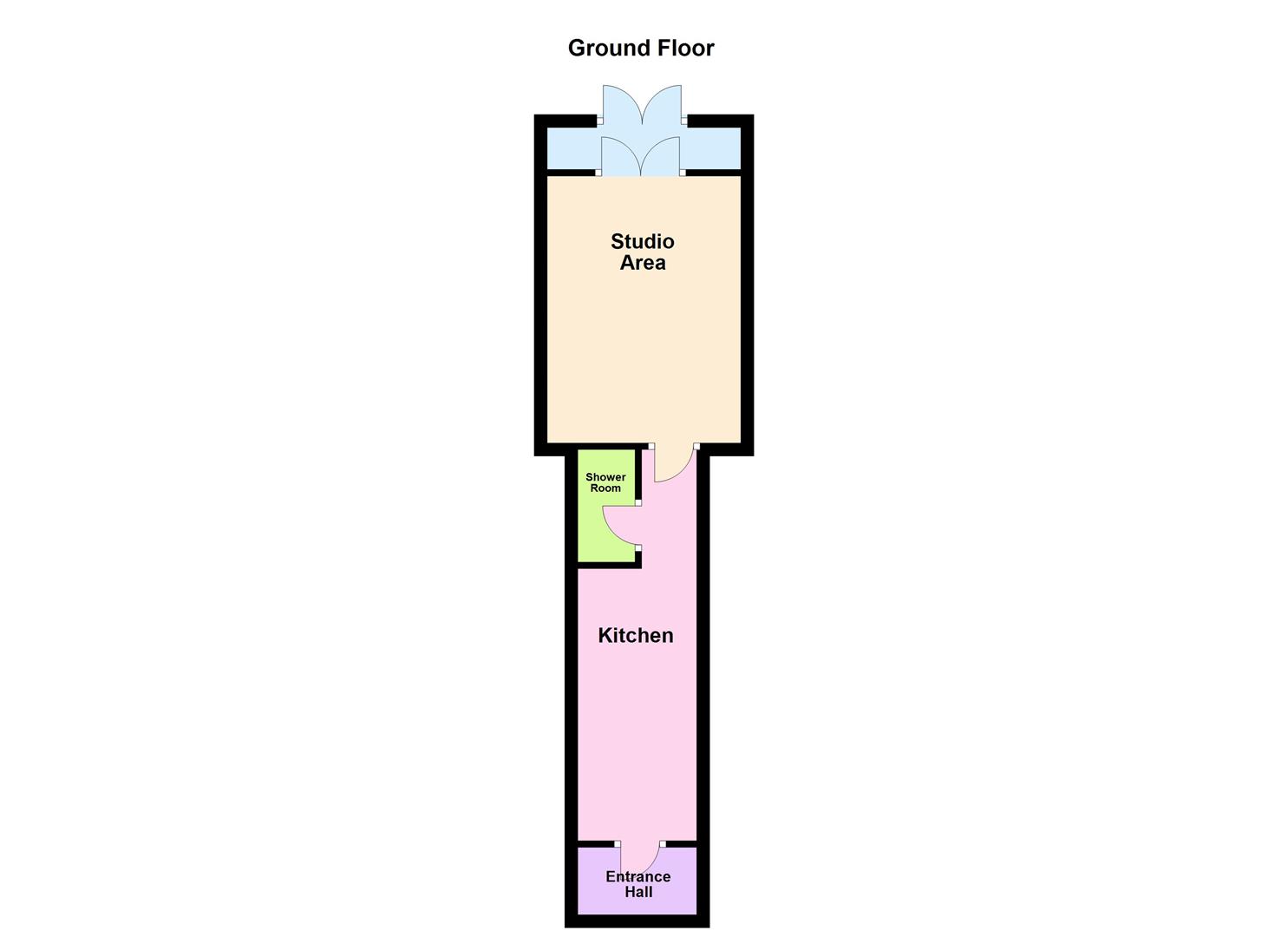 Studio area, radiator, part paneled walls, double doors leading to porch area then further doors leading to your courtyard.